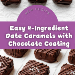 These 4 Ingredient Date Caramels are a deliciously simple, naturally sweet treat made from medjool dates, almond butter, and coconut oil, coated in smooth chocolate. They combine the rich caramel-like flavor of dates with a creamy chocolate coating, perfect for a healthy snack or dessert that is both vegan and gluten-free.