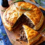 This Asian-Style Beef Pie recipe combines savory ground beef with fragrant ginger and soy sauce, encased in flaky pastry. Topped with sesame seeds and baked to golden perfection, these pies make an irresistible appetizer or snack with a delightful blend of textures and flavors.