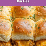 Keywords: BBQ chicken sliders, Hawaiian rolls, game day recipe, party appetizer, shredded chicken sliders, easy baked sliders