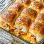 These BBQ Chicken Sliders on Hawaiian Rolls are a delicious and easy-to-make appetizer or meal perfect for gatherings or game day. Tender shredded chicken is mixed with tangy barbecue sauce, layered with cheddar cheese and thinly sliced red onions, then baked on soft, sweet Hawaiian rolls brushed with garlic butter for a flavorful, cheesy treat.