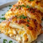 These Cheesy Chicken Crescent Rolls are a delicious and easy-to-make appetizer or snack featuring tender shredded chicken combined with cream cheese, cheddar, and aromatic herbs, all wrapped in buttery crescent dough and baked to golden perfection.
