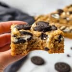 Keywords: Oreo blondies, chewy blondies, white chocolate blondies, Oreo dessert, easy blondie recipe, chewy white chocolate blondies