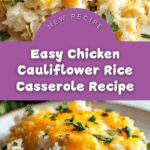 This Chicken Cauliflower Rice Casserole is a comforting, low-carb meal combining tender shredded chicken with flavorful cauliflower rice and a creamy cheese blend. Baked to perfection with a golden cheddar topping and optional steamed veggies, it’s a hearty and nutritious dish ideal for a wholesome family dinner.
