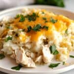 This Chicken Cauliflower Rice Casserole is a comforting, low-carb meal combining tender shredded chicken with flavorful cauliflower rice and a creamy cheese blend. Baked to perfection with a golden cheddar topping and optional steamed veggies, it’s a hearty and nutritious dish ideal for a wholesome family dinner.