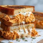 Chicken Parmesan Grilled Cheese combines the classic Italian flavors of breaded chicken, marinara sauce, and melted mozzarella with the comfort of a grilled cheese sandwich. This recipe features tender, seasoned chicken breasts coated in Parmesan-infused breadcrumbs, cooked to golden perfection, then layered with cheese and sauce between buttery toasted bread slices for a deliciously satisfying meal.