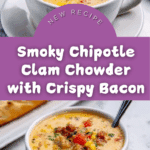 Keywords: Chipotle Clam Chowder, smoky clam chowder, creamy clam chowder, bacon clam chowder, chipotle pepper soup, seafood chowder, easy chowder recipe
