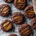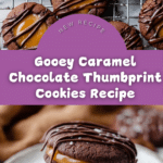 Delight in these rich and fudgy Chocolate Thumbprint Cookies, featuring a soft cocoa-infused chocolate base topped with a luscious homemade caramel filling and a delicate chocolate drizzle. Perfectly balanced with a hint of salt, these cookies are a decadent treat ideal for any occasion.