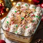 Keywords: Christmas cookie dessert, no-bake dessert, holiday layered dessert, cheesecake pudding lasagna, festive desserts