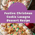 This Christmas Cookie Lasagna is a festive and delicious layered dessert that combines the flavors of sugar cookies, creamy cheesecake, and vanilla pudding. Perfect for holiday gatherings, it’s easy to assemble and sure to impress your guests with its beautiful layers and sweet taste.