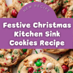 Christmas Kitchen Sink Cookies are a festive treat packed with a delightful mix of sweet and salty flavors. Loaded with M&M’s, white chocolate chips, pretzels, potato chips, and sprinkles, these chewy cookies are perfect for holiday celebrations and sure to impress your guests.