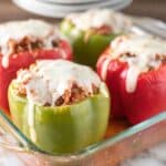 Keywords: stuffed peppers, ground beef recipe, baked peppers, classic stuffed peppers, easy dinner recipe