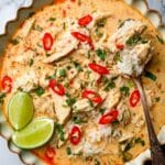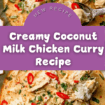 This comforting Coconut Milk Chicken recipe features tender chicken breast poached in a rich and flavorful coconut milk sauce infused with red curry paste, ginger, garlic, and chili. Perfectly balanced with a touch of sweetness and umami from soy sauce and brown sugar, this Thai-inspired dish is served over steamed rice and garnished with fresh cilantro, scallions, and a squeeze of lime for brightness. Ideal for a cozy dinner, it’s easy to prepare and delivers vibrant, creamy, spicy flavors in every bite.