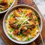 This Copycat KFC Bowl recipe is a comforting, hearty dish featuring mashed potatoes, roasted seasoned chicken, steamed vegetables, and a rich homemade gravy. It’s inspired by the popular fast-food favorite but made with fresh, wholesome ingredients at home. The dish combines crispy baked chicken coated in a flavorful almond flour and cornflake crust, creamy mashed potatoes with cauliflower, sweet peas and corn, topped with sharp cheddar cheese, fresh green onions, and a savory thyme-infused gravy.