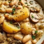 This Cozy White Bean Mushroom Stew is a comforting, hearty vegan dish featuring tender baby potatoes, savory mushrooms, and creamy white beans simmered in a flavorful vegetable broth with herbs. Perfect for chilly days, this stew is rich, dairy-free, and packed with fiber and protein for a wholesome meal.