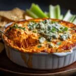 A creamy, spicy Buffalo Chicken Dip that combines tender cooked chicken with tangy buffalo sauce, cream cheese, ranch or blue cheese dressing, and melted shredded cheese. Perfect as a party appetizer served warm and bubbly.