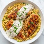 This Caesar Chicken recipe features tender chicken breasts baked in a rich, creamy Caesar dressing and Parmesan cheese mixture, resulting in a flavorful and comforting main dish. Perfectly baked to golden perfection, it pairs wonderfully with a variety of sides like Parmesan noodles and green beans.