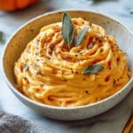 This Creamy Pumpkin Cottage Cheese Pasta is a comforting and wholesome dish perfect for cozy nights. Featuring a luscious sauce made from canned pumpkin purée and full-fat cottage cheese, combined with sautéed garlic and fragrant nutmeg, this pasta offers a creamy texture with a subtle autumnal flavor. Topped with fresh sage and Parmesan cheese, it balances rich and savory notes for an inviting meal that’s both nutritious and satisfying.