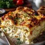 This Creamy Spinach and Cheese Lasagna is a delightful vegetarian twist on a classic favorite. Layers of tender lasagna sheets are filled with a rich spinach and cheese mixture, topped with a smooth béchamel sauce and melted mozzarella for a comforting, flavorful meal.