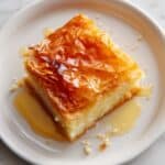 Keywords: Phyllo Milk Pie, Crinkle Cake, Middle Eastern Dessert, Saffron Cake, Rose Water Syrup, Pistachio Cake