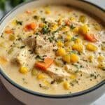 Keywords: Crockpot chicken corn chowder, slow cooker soup, creamy chicken chowder, easy crockpot recipes, comforting soup recipe, gluten-free chowder, hearty chicken soup