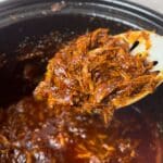 - Shred the Chicken: Carefully remove the chicken thighs from the crockpot and place them into a large bowl. Use two forks to shred the chicken into bite-sized pieces while warm.