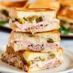 Cuban Sliders are a delicious and savory mini sandwich that combines layers of ham, pulled pork, Swiss cheese, and pickles on soft Hawaiian rolls. Brushed with a garlic butter spread and baked to warm perfection, these sliders make for an easy and crowd-pleasing appetizer or meal.