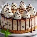 Indulge in this Decadent No Bake Cookie Dough Cheesecake, a luscious dessert combining a crunchy graham cracker crust, creamy no-bake cheesecake filling, and rich, edible cookie dough with mini chocolate chips. Perfect for those seeking a sweet treat without turning on the oven!