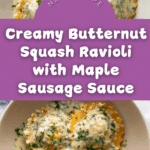 Keywords: butternut squash ravioli, maple cream sauce, Italian sausage, easy ravioli recipe, creamy pasta, fall recipe
