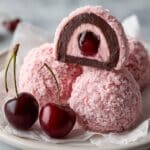 4. Step 4: Scoop about 1 tablespoon of the cherry filling and roll into smooth balls. Place them on a parchment-lined baking sheet and freeze for 20–30 minutes until firm to the touch.