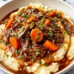 - Serve: Spoon creamy mashed potatoes into serving bowls. Ladle the hot apple cider beef stew over the top. Garnish with extra fresh chives or additional shredded cheddar if desired. Enjoy the warm, comforting flavors of fall in every bite.