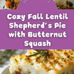 Keywords: Fall Lentil Shepherd’s Pie, vegetarian shepherd’s pie, butternut squash recipe, lentil casserole, autumn comfort food, mashed potato topping, plant-based main dish
