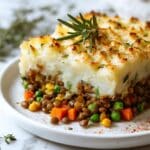 Keywords: Fall Lentil Shepherd’s Pie, vegetarian shepherd’s pie, butternut squash recipe, lentil casserole, autumn comfort food, mashed potato topping, plant-based main dish