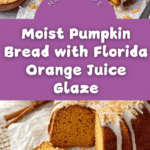 This Florida Orange Juice Pumpkin Bread with Streusel and Orange Glaze is a moist, flavorful loaf combining the natural sweetness of pumpkin puree and fresh Florida orange juice. The bread is topped with a buttery streusel and finished with a tangy orange glaze, perfect for breakfast, brunch, or a comforting snack.