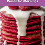 Keywords: red velvet pancakes, Valentine’s brunch, fluffy pancakes, cream cheese glaze, breakfast recipes, stovetop pancakes, cocoa pancakes