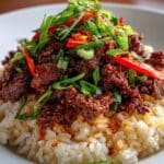 This French Onion Beef and Rice dish combines rich caramelized onions, savory ground beef, and tender rice for a comforting and flavorful meal. Topped with melted Gruyére cheese, it’s perfect for a cozy weeknight dinner that’s both satisfying and easy to prepare.