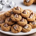 These Gingerbread Kiss Cookies are a festive treat combining classic spiced gingerbread flavors with soft, chewy texture. Topped with a sweet Hershey’s Hugs kiss and coated in sanding sugar, they’re perfect for holiday celebrations or any time you crave a delightful spiced cookie.