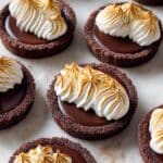 These Gluten Free Hot Chocolate Cookies combine a rich, gooey chocolate center with a tender, cocoa-infused cookie exterior. Finished with a fluffy Swiss meringue topping, they are an indulgent treat perfect for any chocolate lover craving a cozy, gluten-free dessert.