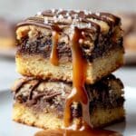 - Add Topping and Cool: Remove from oven and immediately sprinkle flaky sea salt over the warm top. Allow the bars to cool completely in the pan on a wire rack before slicing into squares.