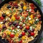 A vibrant and flavorful Greek Orzo recipe that combines tender orzo pasta cooked in chicken stock with juicy cherry tomatoes, savory olives, tangy feta cheese, and aromatic herbs. Perfect as a wholesome side dish or a light main, this Mediterranean-inspired dish is enhanced with lemon juice, olive oil, and a hint of smoked paprika for a refreshing and balanced taste.