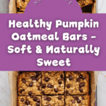 Keywords: pumpkin oatmeal bars, healthy snacks, baked oatmeal bars, fall recipes, gluten-free oats, vegetarian snack, maple syrup sweetened, pumpkin bars