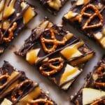 - Drizzle Caramel and Chocolate: Drizzle the warm caramel sauce over the assembled bark, followed by drizzling the reserved melted chocolate on top for a marbled effect.