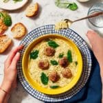 - Cook meatballs and pasta: Carefully add the prepared meatballs and orzo pasta to the boiling broth. Cook for about 10 minutes, stirring occasionally to prevent sticking, until meatballs are cooked through and pasta is tender.