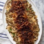 Keywords: Lebanese Mujadara, Mujadara recipe, lentils and rice, caramelized onions, vegetarian Middle Eastern dish