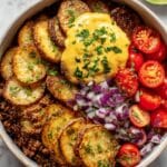 Loaded Fiesta Potato Bowls are a vibrant and satisfying meal full of bold flavors and textures. Crispy roasted potatoes are topped with seasoned beef or beans, melted cheese, and fresh toppings for a fun and hearty dinner. They’re easy to customize and perfect for weeknights or casual gatherings.