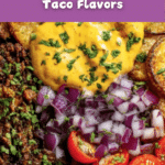 Keywords: loaded potatoes, fiesta bowl, baked potatoes, taco seasoned beef, Mexican flavors, easy dinner, crispy potatoes