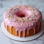 12. Glaze Cake: Spoon the glaze over the cooled cake and spread gently with a spoon or offset spatula to allow drips on the edges. Optionally, decorate with sprinkles.