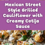 Keywords: Mexican, grilled cauliflower, street style, creamy sauce, Cotija cheese, side dish, summer recipe, easy, gluten free