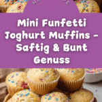 Mini Funfetti Joghurt Muffins sind kleine, bunte Leckereien, die mit ihrer fluffigen Textur und den fröhlichen Streuseln jeden Anlass aufhellen. Sie verbinden die Saftigkeit von griechischem Joghurt mit der verspielten Süße von bunten Streuseln – perfekt für Kinder, Familien und alle, die das Leben gerne farbenfroh genießen.