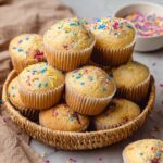 Mini Funfetti Joghurt Muffins sind kleine, bunte Leckereien, die mit ihrer fluffigen Textur und den fröhlichen Streuseln jeden Anlass aufhellen. Sie verbinden die Saftigkeit von griechischem Joghurt mit der verspielten Süße von bunten Streuseln – perfekt für Kinder, Familien und alle, die das Leben gerne farbenfroh genießen.