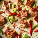This Pepperoncini Chicken Skillet is a flavorful and creamy one-pan dish featuring tender chicken breasts cooked with tangy pepperoncini peppers, aromatic onions, garlic, and a rich cream sauce. Perfect for a quick and satisfying meal, it’s served best over pasta or rice to soak up the delicious sauce.
